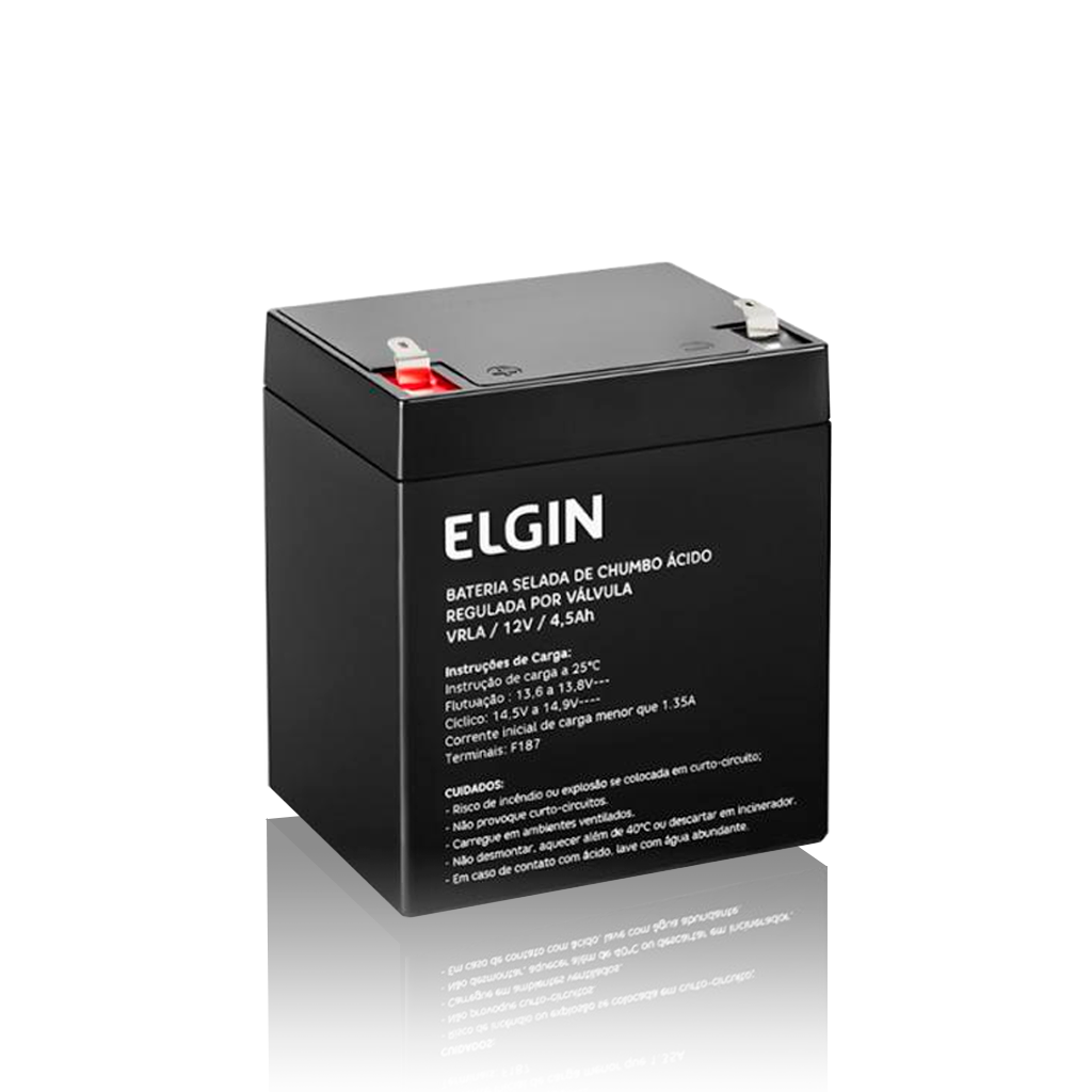 Bateria selada; Bateria chumbo-ácido; Bateria 12V; Bateria 4,5Ah; Bateria Elgin; Bateria para alarme; Bateria para nobreak; Bateria para sistema de segurança; Bateria recarregável; Bateria estacionária; Bateria livre de manutenção; Bateria VRLA; Bateria para CFTV; Bateria para portão eletrônico; Bateria de longa duração; Bateria confiável; Bateria segura; Bateria UPS