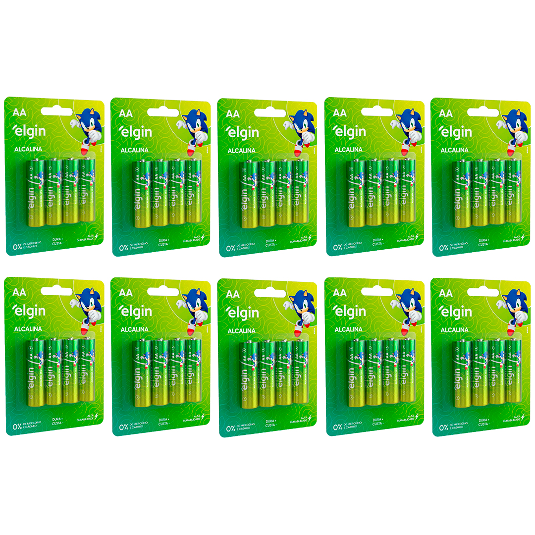 Kit 10 Blisters Pilha Alcalina AA Elgin com 4 unidades