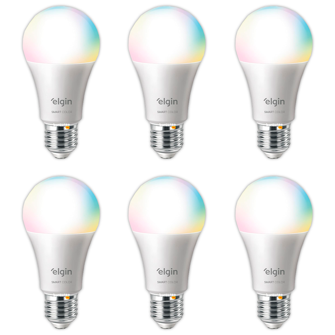Lâmpada Inteligente Smart Color 10W Elgin RGB Wi-Fi - Compatível Alexa - KIT 6
