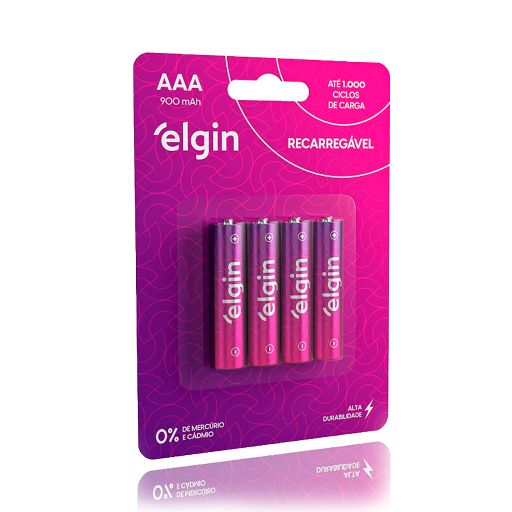 Pilha recarregável AAA 900mAh Elgin com 4 unidades Palito